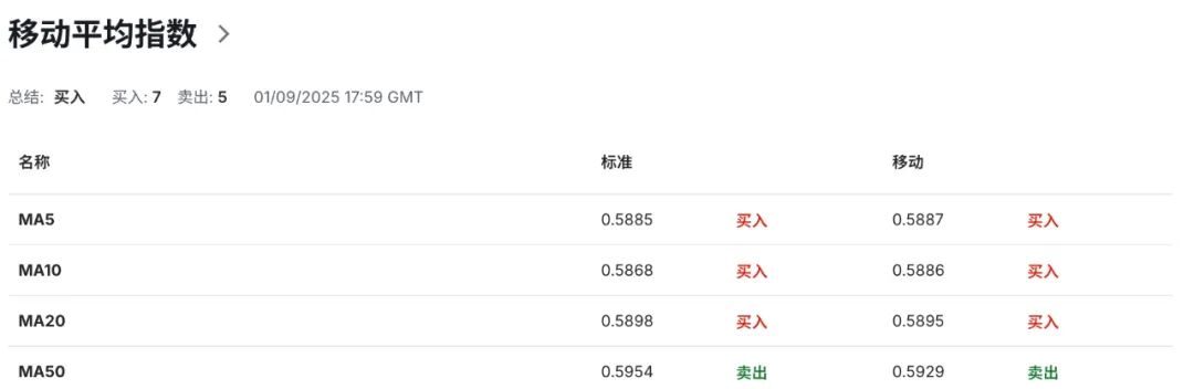 技术指标显示,日图级别上,纽币当前整体价格走势贴合于布林带中轨所指向的0.5900区域运行,表明多头动能修复力保持相对韧性,而当前多空双方力量当前维持相对均衡,未见明显强弱分化迹象,并同时暗示其汇价正面临短期价格走势的方向性选择临界点。布林带上轨所指向的0.5980区域构成纽币短期动态阻力,布林带下轨所指向的0.5810区域构成其短期动态支撑。布林带开口未见明显扩张或收缩迹象,表明其短期波动率仍保持平稳,汇价偏向震荡整理格局,而非趋势性突破倾向。14日RSI相对强弱指标维持于48.80附近区域,整体保持在55-45强弱平衡区,进一步验证纽币当前多空力量维持均衡水平,市场情绪保持相对谨慎中立特征,汇价正面临短期进一步走强或回落的阶段性选择触发信号。